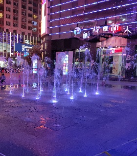 音樂噴泉隨著音樂變換,為城市的人們在夜間增添一份美輪美奐的視覺和聽覺的盛宴,是快節奏的城市生活夜間一項頗為浪漫